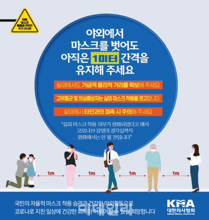 그 외에도 대한의사협회에서는 이번 야외마스크 미착용 가능에 대해